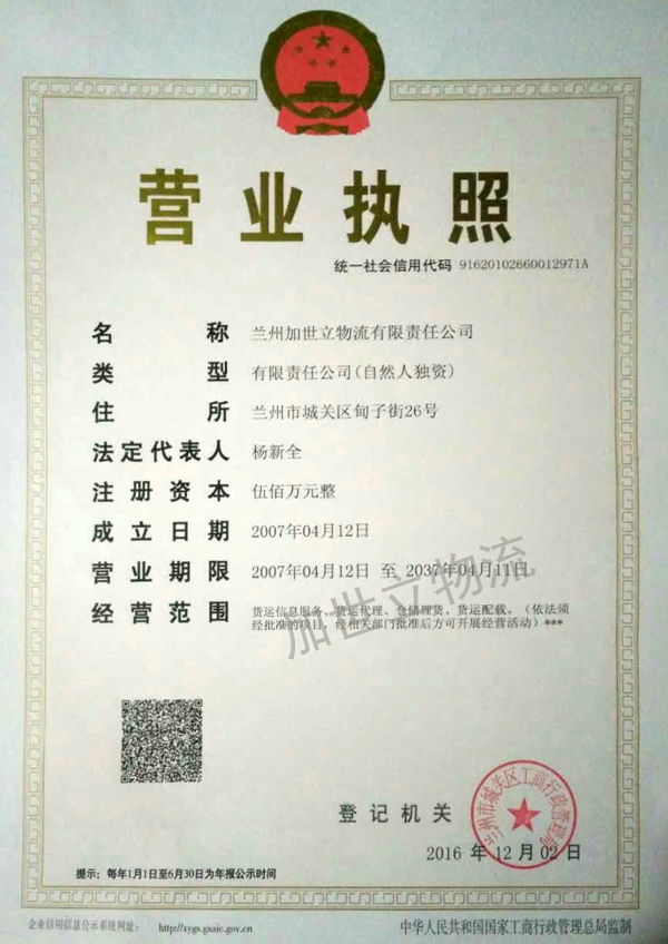 我公司現在在全國已設24家分支機構,并有20多名專業業務人員,基本形成了一個全國性的貨運代理企業。我們秉承“珍惜所托,服務到家”的企業理念,提供優質的服務“守信用,重合同”是我公司的服務宗旨。 從蘭州、南京到中國的各大城市,您只要撥通我們的任何一部電話,都會的到相應的服務。蘭州加世立物流有限責任公司確保您的貨物如期到達,安全、可靠是我們對您的保證 .